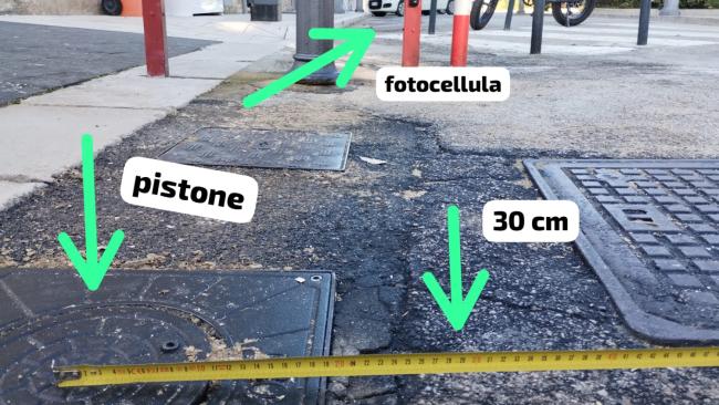 E non finisce qui, perché pare che oltre a impedire l'ingresso delle auto nell'isola pedonale, il pistone si improvvisi anche gioco per bambini: uno sale mentre fuoriesce e l'amichetto passa la gamba davanti alla fotocellula. Quanto basta a scatenare un alzarsi e ritirarsi a ripetizione.