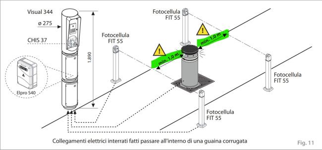 In rete abbiamo trovato il manuale di installazione di un dissuasore idraulico e la figura indica in un metro la distanza minima. Siamo andati a misurare in piazza Giovanni XXIII e la distanza non arriva a mezzo metro. Ecco le foto: