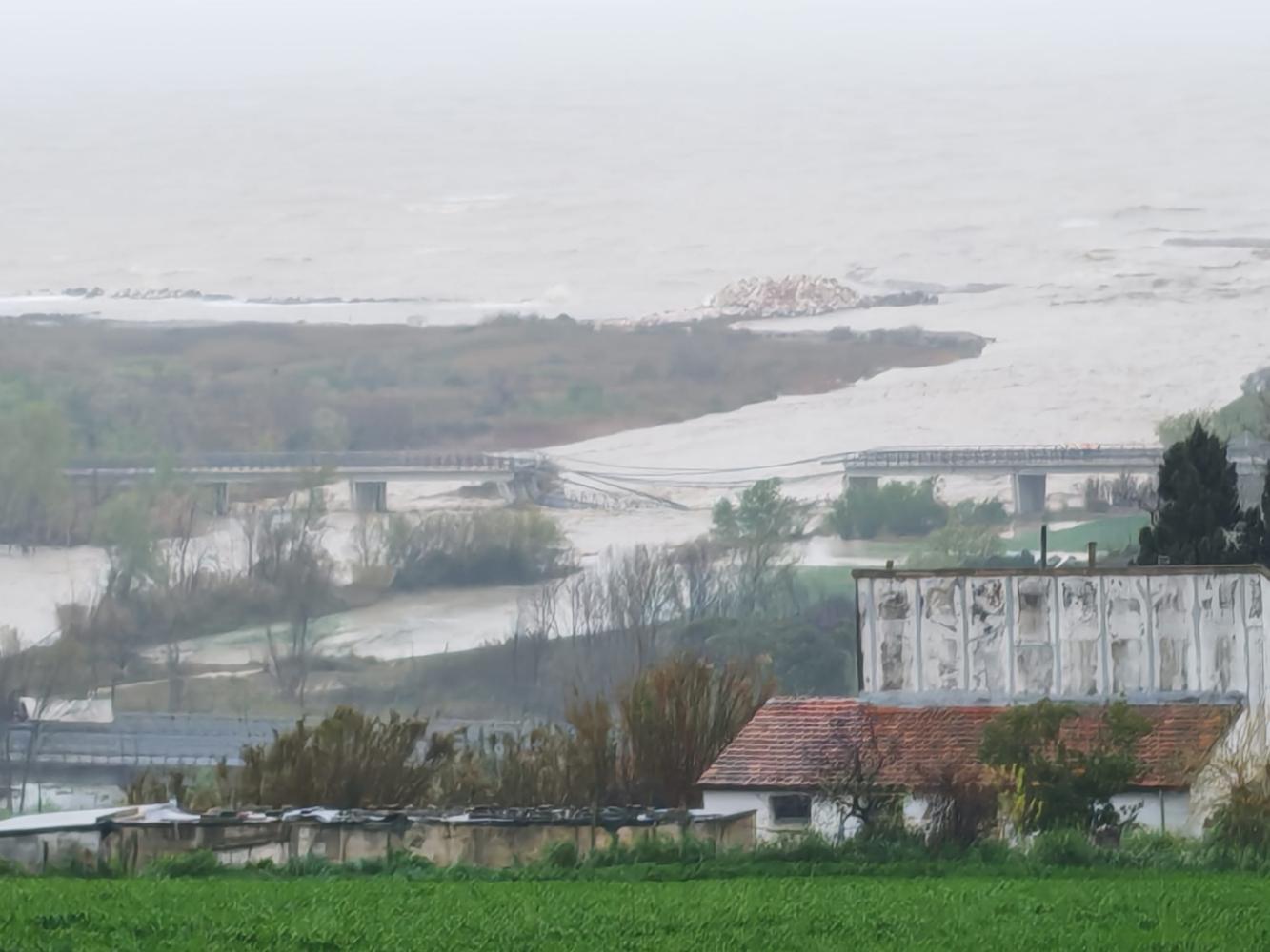 Il ponte sulla Statale 16 che sovrasta il Trigno è crollato stamattina, poco prima delle 10:00, a causa della piena del fiume dopo tre giorni continuati di pioggia.