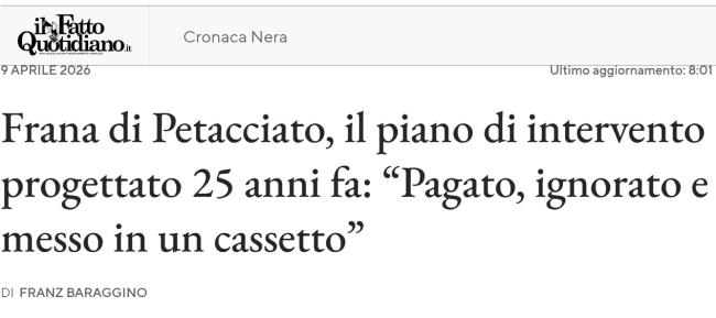 C’è chi parla di evento prevedibile, come il sindaco, Antonio Di Pardo. C’è chi non se l’aspettava, come il presidente della Regione Molise, Francesco Roberti. E poi c’è chi ricorda che per la frana di Petacciato, risvegliata per l’ennesima volta tra il 6 e 7 aprile, c’era un progetto in mano a Regione e Comune dal 2002 e mai portato a termine. A dirlo è l’architetto Domenico Staniscia, già assessore ai lavori pubblici del piccolo comune molisano dal 1999 e il 2003 e in seguito promotore del Comitato ‘No Frana’.