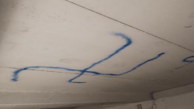 Un estintore svuotato del tutto, un altro per metà , oltre che scritte con le bombolette di vernice spray e disegni osceni. Persino una svastica. Sulle pareti e finanche sul soffitto, ciò che fa pensare a imbrattatori acrobati, oltre che seriali. Perché non è la prima volta che succede.