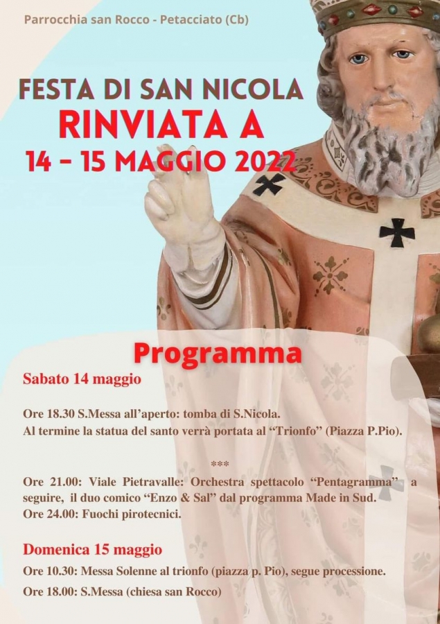 PETACCIATO. Festeggiamenti in onore di San NICOLA di Bari