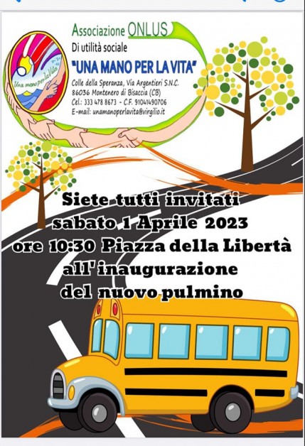 MONTENERO DI BISACCIA. L'associazione che da anni si occupa di aiuto alle persone disabili, fondata a suo tempo dal compianto Dante Di Cintio, raggiunge un importante obiettivo: un proprio pulmino. Stamattina (sabato 1 aprile) l'inaugurazione in piazza della Libertà alle 10:30. La cittadinanza è invitata a partecipare.