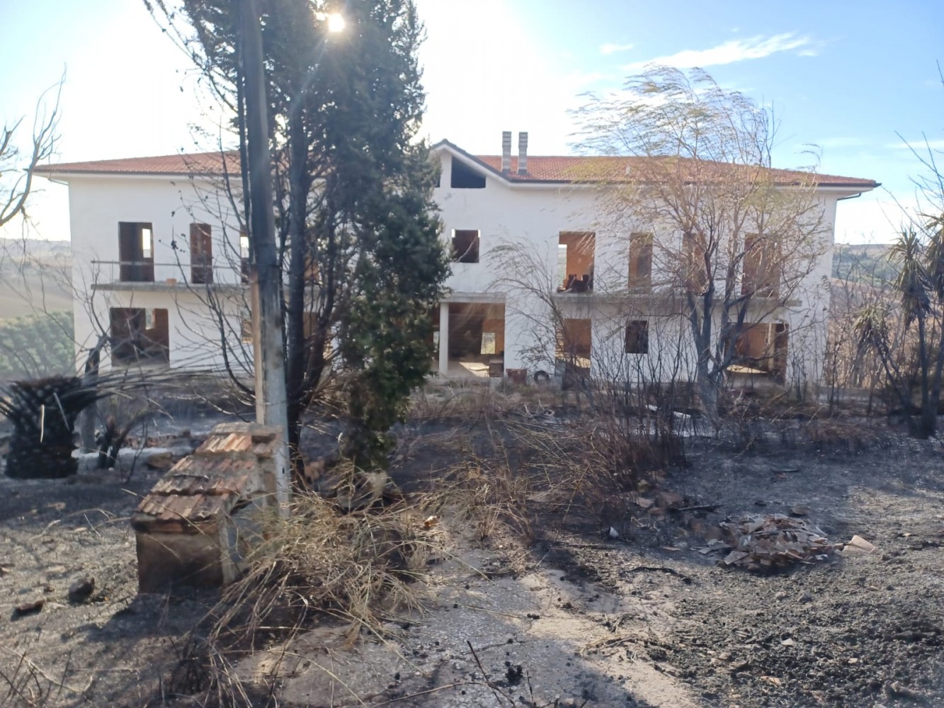 MONTENERO DI BISACCIA. Un paesaggio sventrato, grigio e cupo. Così si presenta l’agro della contrada La Valle e Mondrone il giorno dopo l’ennesimo incendio. I Vigili del Fuoco hanno dovuto lavorare fino a notte inoltrata per spegnere le fiamme che divampate nella serata di ieri (ndr lunedì 30 ottobre) hanno minacciato diverse abitazioni. Il rogo ha lambito una masseria in disuso ed uno stabile in costruzione. Le forti folate di vento hanno reso le operazioni di spegnimento difficoltose mettendo a serio rischio l’incolumità degli abitanti della zona.