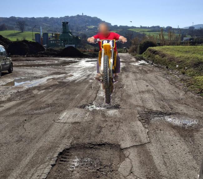 Il posto è contrada Canniviere, zona artigianale che si trova proprio sotto l'abitato, e dove è posta anche l'isola ecologica. La strada più rotta è proprio quella che gli utenti percorrono per portare in discarica, e così differenziare, rifiuti ingombranti, elettronici, elettrodomestici, olio vegetale usato, vecchi mobili ecc. Ma per arrivarci si deve attraversare una pista da motocross: profonde e antiche buche sull'intera larghezza della carreggiata e per tutta la lunghezza dell'ultimo tratto. Inutile sterzare con l'auto per evitare le buche, si scansa una se ne prende un'altra. La strada è comunale e se c'era asfalto non ne è rimasta traccia.