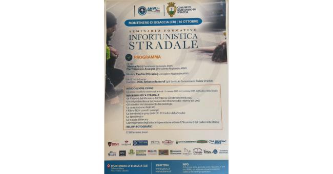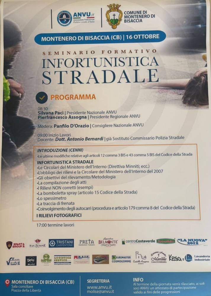 Si terrà giovedì 16 ottobre, presso la Sala Consiliare del Comune di Montenero di Bisaccia in Piazza della Libertà , un importante seminario formativo sull’infortunistica stradale organizzato dall’ANVU – Associazione Professionale Polizia Locale d’Italia – in collaborazione con il Comune di Montenero di Bisaccia.