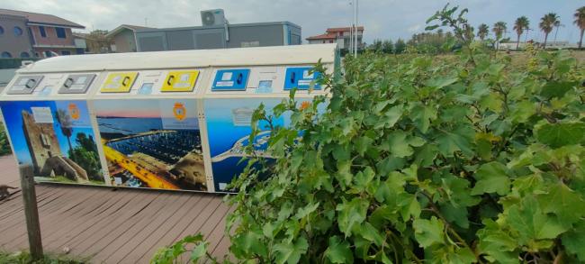 Ore 13:16: Monteneronotizie fa fotografare il cassonetto dei rifiuti di ultima generazione posto alla Marina, proprio accanto alla pista ciclabile. È anch'esso circondato e quasi sovrastato dalla nappola. Chissà che gli addetti quando andranno a svuotarlo non trovino tinti di giallo i rifiuti, visto l'antico uso della pianta a scopo colorante.