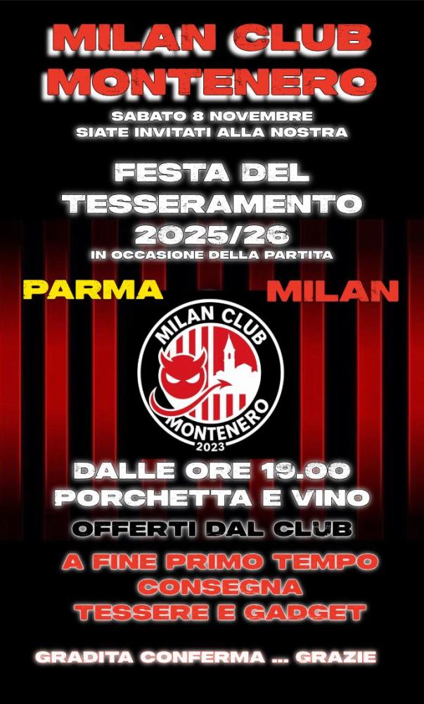 Grazie a tutti gli amici tifosi che ieri sera hanno partecipato alla festa del tesseramento, trasformandola in un momento davvero piacevole e pieno di entusiasmo. La compagnia, le risate e la passione rossonera hanno reso l’incontro un successo.