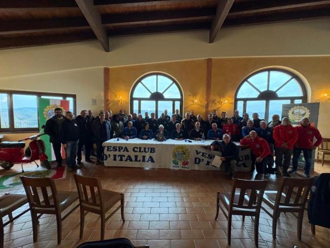 MONTENERO DI BISACCIA. Si è tenuto ieri in un agriturismo la riunione dei Vespa Club di Abruzzo e Molise. Presenti i consiglieri nazionali Cosimo Baratta, Franco Benignetti e Vincenzo Vitrioli. Su ventisette club registrati, nelle due regioni, venticinque erano presenti. A fare gli onori di casa la presidente del Vespa Club di Montenero di Bisaccia, Monica Di Pardo. A lei il compito di salutare i presenti e dare il via ai lavori, presentando i collaboratori dei vari settori: Leonardo Santucci (Abruzzo) e Ignazio Rivera (Molise) per lo Sport, Danilo Mantini (Abruzzo) e la stessa Monica Di Pardo (Molise) per il Turismo, riportando anche il saluto di Alessandro Iannone, collaboratori per lo Storico-Culturale per entrambi i territori.