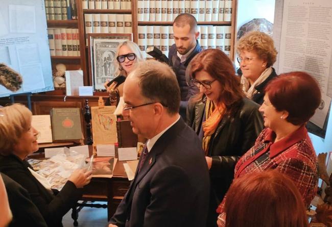 tagliare il nastro della mostra bibliografica e documentaria allestita nella sede