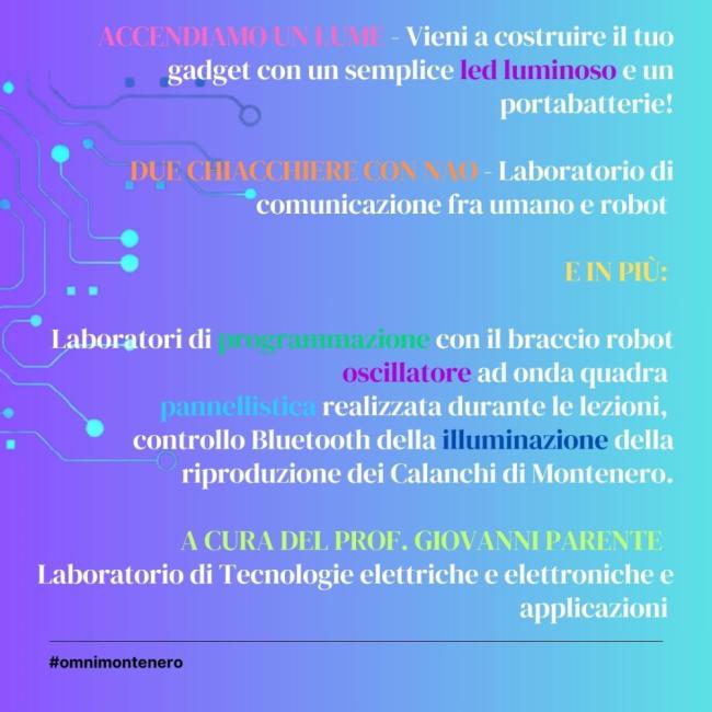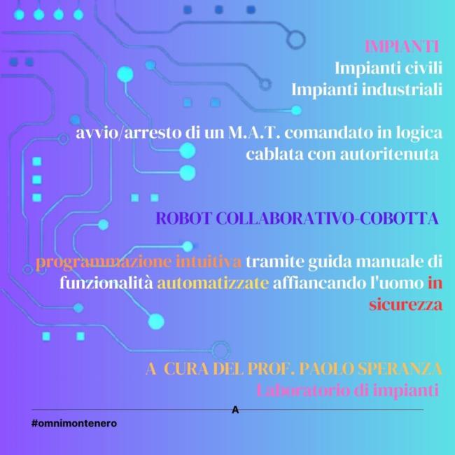 All'Ipsia e al Les arriva il Festival dell'Elettronica: una settimana di attività per questa prima edizione dedicata al tema: "TrasformAzioni". All'Istituto "Sammy Basso" di Montenero di Bisaccia gli alunni dell Ipsia e del Liceo delle scienze umane dal 22 al 30 gennaio saranno protagonisti del primo Festival dedicato all'Elettronica, con attività formative legate al tema delle trasformazioni, tanto sotto il profilo tecnico-scientifico, che più propriamente umanistico. In un mondo che cambia continuamente, attraverso l'elettronica, la tecnologia, l'economia, la comunicazione, sono proprio gli studenti gli autori e gli interpreti del cambiamento, come ha sempre sostenuto la Dirigente scolastica Patrizia Ancora, sempre sensibile alle attività di formazione e valorizzazione degli studenti. E allora spazio a laboratori e alla progettualità ! Si inizia il 22 gennaio, con un evento di formazione sui percorsi ITS, dedicato ai percorsi formativi e lavorativi del post- diploma. Ad introdurre l'incontro sarà la dottoressa Rosalba De Filippis, dell'Its di Lanciano. Si continua con i laboratori dell'Ipsia, con attività specifiche come "Energy Harvesting & Scavenging: recuperare energia ed ottimizzarne la gestione", e "Due chiacchiere con Nao" - Laboratorio di comunicazione fra umano e robot, "con programmazione di un umanoide e Accendiamo un lume"; e ancora laboratori di chimica e di impianti, con attività legate alla sicurezza, all' avvio/arresto di un M.A.T. comandato in logica cablata con autoritenuta, e la programmazione del Robot Cobotta, tra le tante.