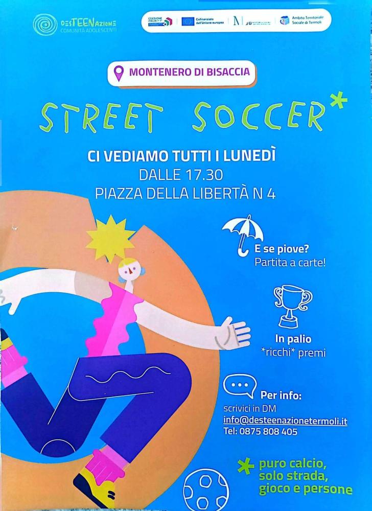 Ogni lunedì alle 17.30, in Piazza della Libertà , lo street soccer diventa uno spazio aperto di incontro, gioco e relazione per ragazzi e ragazze del territorio. In caso di maltempo, l’iniziativa prosegue con partite a carte e momenti di socialità , mantenendo vivo l’obiettivo principale: creare occasioni di partecipazione e condivisione in un contesto informale e inclusivo.