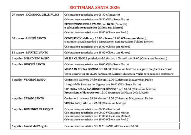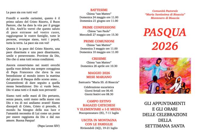 Pasqua 2026: programma settimana santa a Montenero di Bisaccia