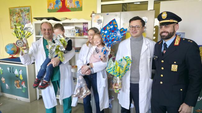 Dato che nella mattinata di oggi non vi erano bimbi ricoverati in reparto, le uova sono state consegnate ai bambini in attesa di visita, a quelli presenti in quel momento in Ospedale per altri motivi e alle partorienti.