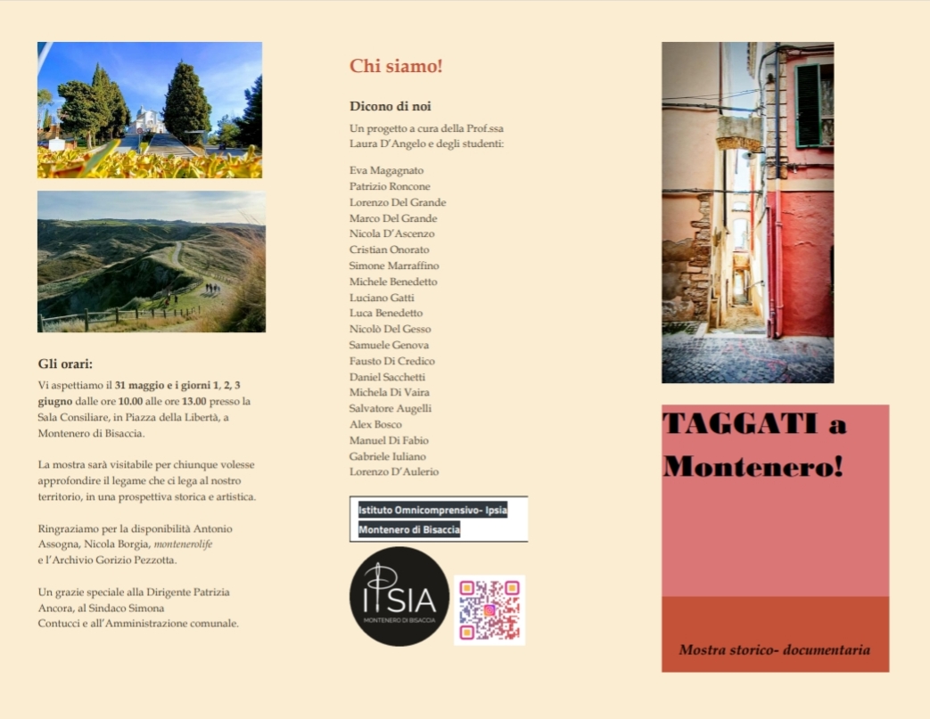 Sarà inaugurata domani la mostra storico- documentaria "Taggati a Montenero", nell'ambito del progetto di valorizzazione del territorio promosso dagli alunni dell'Istituto Omnicomprensivo di Montenero di Bisaccia. Si tratta di una collettanea di foto che ripercorrono la storia di Montenero nei suoi momenti più significativi e simbolici: scatti di vita quotidiana si alternano ad istantanee di vita vissuta, lette ed interpretate attraverso il filtro delle emozioni e della sensibilità degli studenti. Così la docente Laura D'Angelo, curatrice del progetto:«L’idea è quella di presentare il territorio come laboratorio di cittadinanza. Leggere il paesaggio e quello che ci circonda per un ideale civile di bellezza che si esprime nel riconoscimento di una dignità , umana ed identitaria. Tornare sui passi di ieri, sfogliare immagini in bianco e nero e a colori, camminare tra i vicoli che sanciscono il nostro passato e il nostro futuro, ci permettono di diventare consapevoli degli spazi urbani, umani e paesaggistici: di quei modi in cui nei