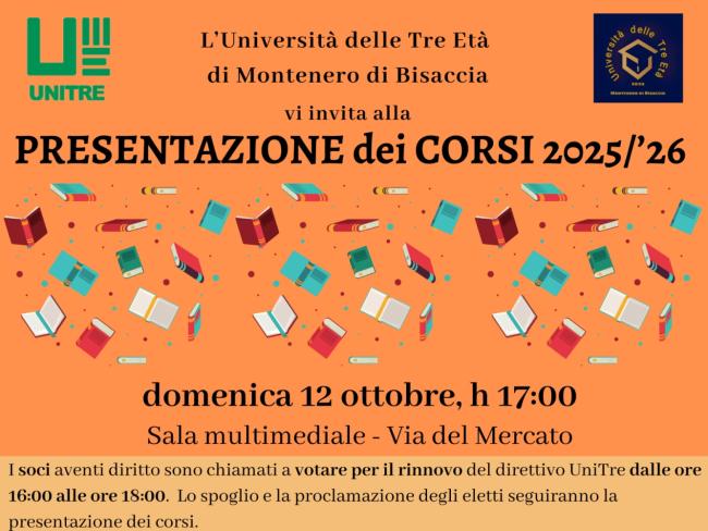 Come per lo scorso anno accademico, a illustrare il funzionamento e la nuova offerta formativa dell’UniTre montenerese saranno i membri del direttivo uscente e alcuni dei docenti stessi.
