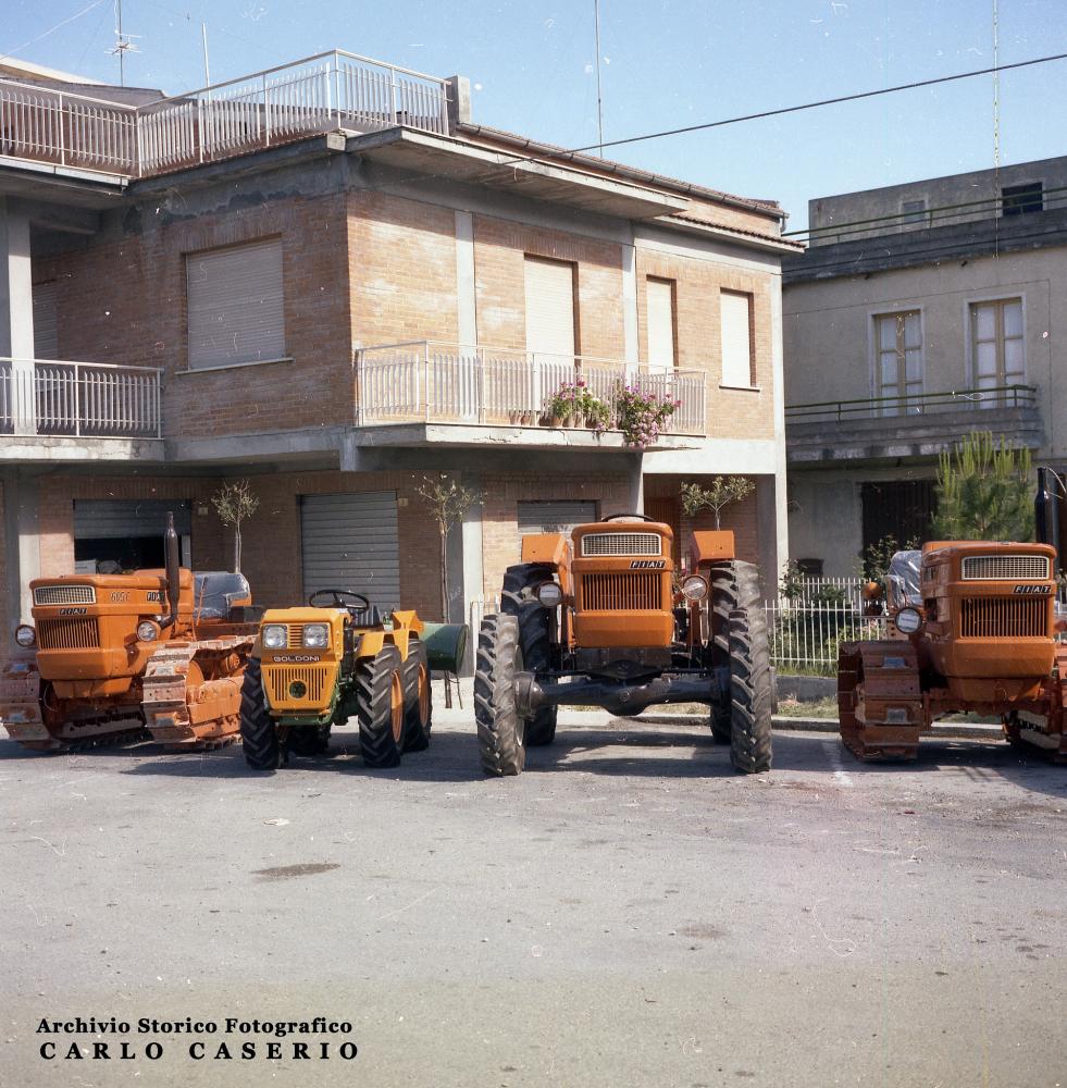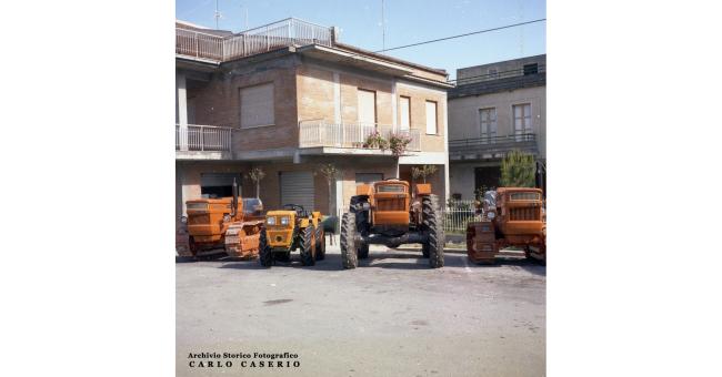 Siamo in piazza Cavalieri di Vittorio Veneto e dove oggi ci sono parcheggi e tavolini di bar, all'epoca erano esposti quattro trattori, due cingolati e due gommati. Vi era infatti il consorzio agrario, che vendeva appunto anche mezzi agricoli. I due trattori cingolati sono dei nuovi e fiammanti Fiat 605 C, pronti per essere ritirati e lavorare i terreni di Montenero o dei paesi limitrofi. L'innovazione più importante fu la dotazione di sollevatore idraulico, grazie al quale il 605 permetteva di usare attrezzature come vanga, fresa, oltre che trainare un aratro. Una svolta per la meccanizzazione in agricoltura, una rivoluzione che si sommava all'arrivo della mietitrebbiatrice e altro. Il settore primario smetteva di essere quello con più occupati, poiché i mezzi riducevano la necessità di manodopera, e ci si poteva dedicare ad altri lavori. Uno su tutti, in quei tempi, il lavoro in fabbrica, ossia Fiat, Marelli e Siv, fra Termoli e San Salvo.