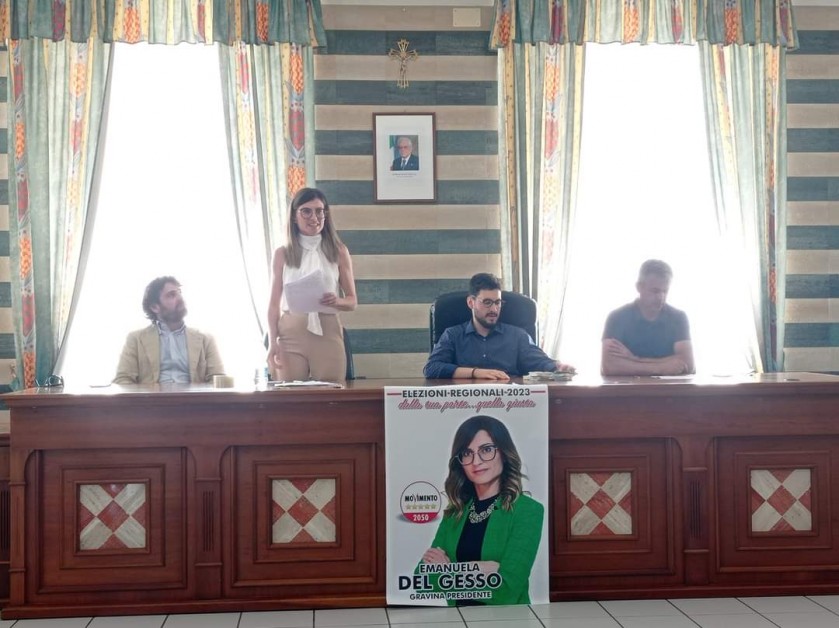 MONTENERO DI BISACCIA. È il Movimento 5 stelle ad aprire la campagna elettorale nel centro bassomolisano con il consueto sistema dei comizi. Stamattina nella sala consiliare è stata infatti presentata la candidatura di Emanuela Del Gesso alla carica di consigliera regionale, in vista delle elezioni in programma per il 25 e 26 giugno prossimi. Hanno partecipato all'incontro i consiglieri comunali Gianluca Monturano e Fabio De Risio, uno noto militante l'altro vicino al M5s e ritenuto sicuro candidato alle regionali fino a qualche giorno prima della presentazione delle liste, nonché Matteo Fallica e Vittorio Nola, ambedue in lista. Nola, va precisato, è arrivato in ritardo, pare a causa dei vari cantieri che affliggono la Statale 650 Trignina.