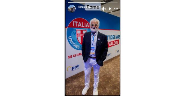 Infine la foto social di oggi, per la precisione una storia su Facebook. Si vede Teresio Di Pietro fotografato da qualcun altro, non è un autoscatto o selfie che dir si voglia, davanti ai manifesti giganti della festa nazionale Udc, in programma oggi e domani nella Capitale. E difatti, in alto sulla foto, lo stesso Teresio ha aggiunto "Roma". Giacca blu, bianchi invece pantaloni e scarpe sportive, al collo il pass. "Forti dei nostri valori", stemma di partito, "festa nazionale" e infine la dicitura che ironia della sorte non è nemmeno parzialmente coperta dalla giacca, a differenza delle altre: "segretario regionale". In caratteri più grandi rispetto alle altre scritte e su sfondo arancione. Chi ha disegnato il lasciapassare evidentemente ha voluto evitare qualsiasi equivoco, chi lo indossa deve essere riconosciuto subito.