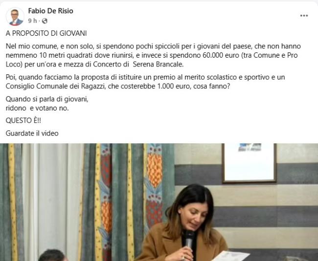 Dalla pagina Facebook del consigliere di minoranza a Montenero di Bisaccia Fabio De Risio: