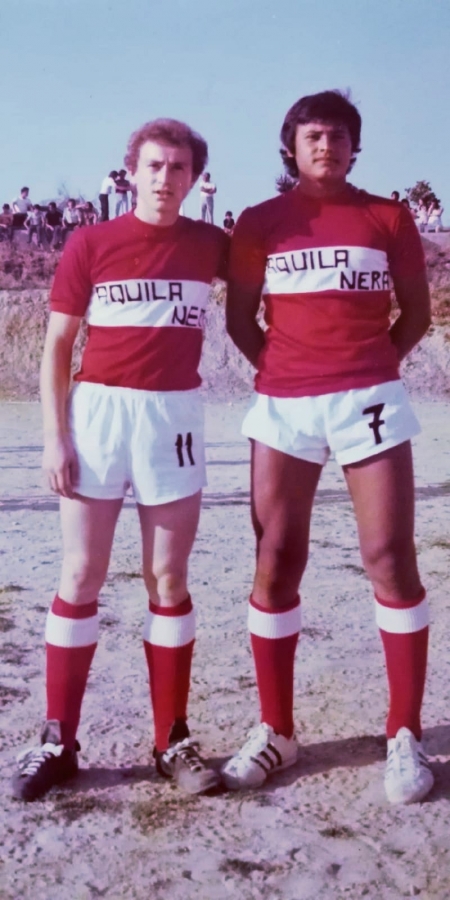 Nando Di Pinto (a destra) con Giuseppe Marino ai tempi dei tornei cittadini di calcio a Montenero di Bisaccia