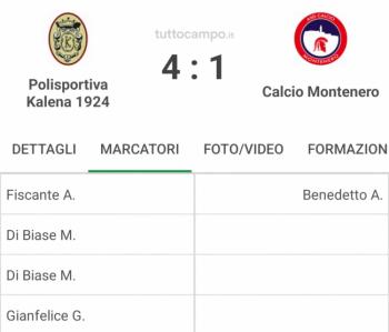 Al 19° Giagnorio su respinta in area, trova lo spazio per trafiggere il portiere avversario e pareggia la gara.