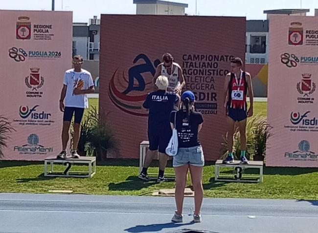 MOLFETTA. Un terzo posto e la seconda medaglia in una settimana per Angelo Trasmundi. Il corridore di Montenero di Bisaccia ha disputato ieri nel centro pugliese i diecimila metri Fisdir, nell'ambito dei Campionati italiani assoluti di atletica leggera, in programma anche nella giornata di oggi nello stadio di Molfetta. Sua la terza piazza al termine dei venticinque giri di pista, sotto un sole rovente, con il tempo di 42' 42". Davanti a sé il compagno di squadra alla Anthropos di Civitanova Marche Gabriele Bonazza, mentre primo è arrivato Simone Colasuonno (Polisportiva Elos Bitonto).