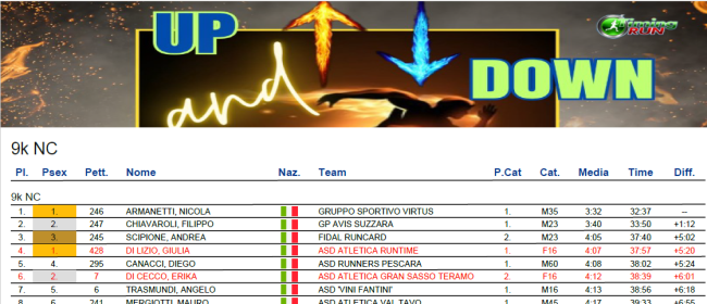 MONTESILVANO. Successi all'ordine della settimana per Angelo Trasmundi. Il corridore di Montenero di Bisaccia ha conquistato ieri il primo posto di categoria (M16) nella Montesilvano down & up. Una gara di 9,6 chilometri chiamata non a caso su e giù, poiché il percorso è per metà in discesa e per l'altra in salita. Una competizione non semplice, pertanto, nella quale il corridore ventiduenne ha completato il percorso in 38' 56" (4' 13" sul chilometro), conquistando così il primo posto nella sua categoria e il settimo nella classifica assoluta. Soddisfazione per il suo allenatore (e celebre podista) Alberico De Cecco e per lo staff della sua squadra Vini Fantini.