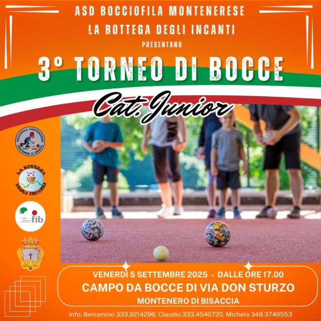 Ieri, venerdì 5 settembre, a partire dalle ore 17.00, si è svolto il terzo torneo di bocce categoria junior, organizzato dall’Associazione Bocciofila montenerese in collaborazione con la Bottega degli Incanti. Alla competizione hanno preso parte nove coppie di bambini, suddivise in tre gironi da tre squadre ciascuno. Dopo una fase preliminare avvincente, hanno conquistato l’accesso diretto alle semifinali le migliori prime di ciascun girone: Matteo e Andrea (girone A), Giorgio e Cecilia (girone B) e Nina e Teresa (girone C). A raggiungerli è stata anche la migliore seconda classificata, la coppia formata da Cristian e Diego.