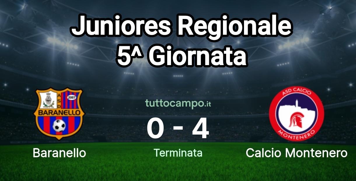 Nella quinta giornata la juniores di Montenero batte con un sonoro 4-0 a domicilio, il Baranello di Mister Di Chiro Emanuele.