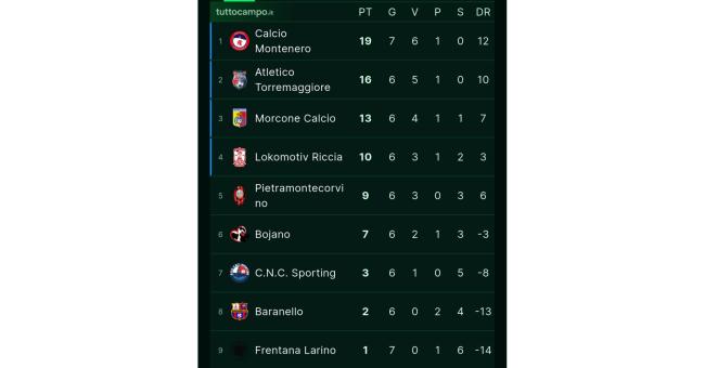 Lunedì 10 novembre la capolista Montenero affronta al Colalillo il Bojano di mister Colalillo
