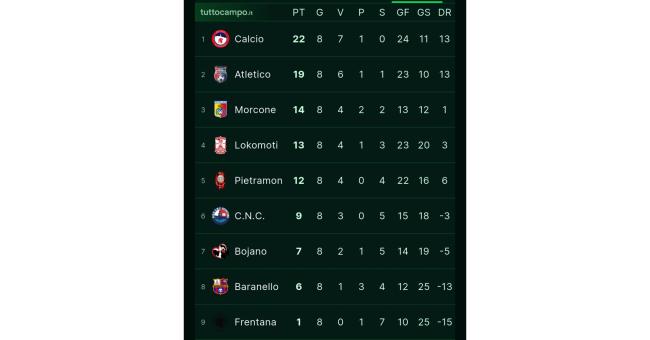 In 8 gare, 7 vittorie ed un solo pareggio (con la seconda in classifica, Atletico Torremaggiore), con il miglior attacco e la seconda miglior difesa, conclude il girone d'andata, con tre punti di vantaggio sul Torremaggiore.