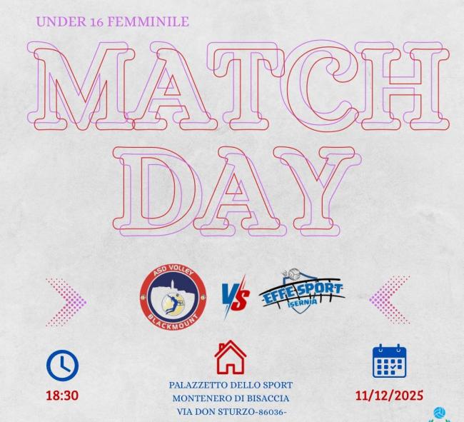 Nella serata di giovedì 11 Dicembre alle 18:30 presso il palazzetto dello sport di Montenero di Bisaccia si svolgerà la terza giornata del campionato regionale under-16 femminile.