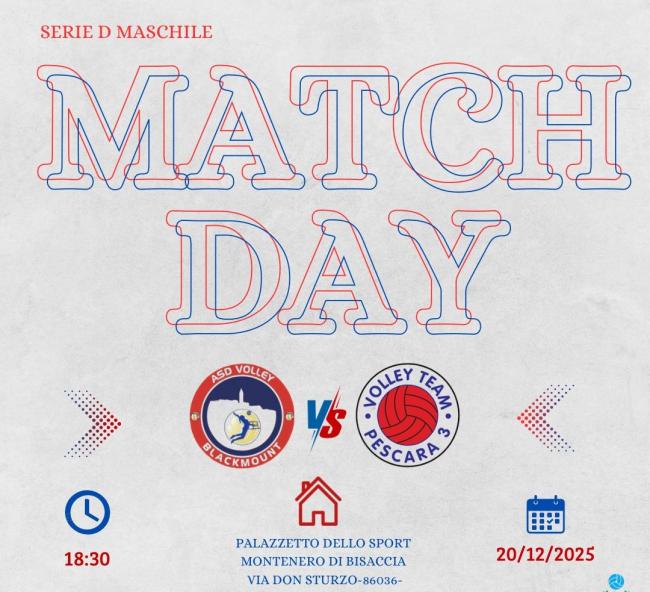 Sabato 20 dicembre alle ore 18:30 presso il palazzetto dello sport la volley Blackmount ospita la squadra di Pescara per l’ultima giornata di campionato del 2025.