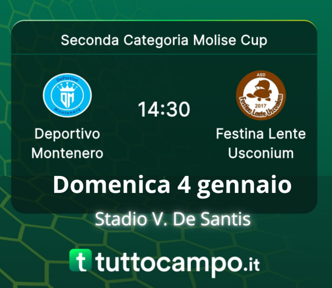Domenica 4 gennaio alle ore 14:30 il Deportivo è impegnato nella terza e ultima gara del girone I della Molise Cup di seconda categoria.