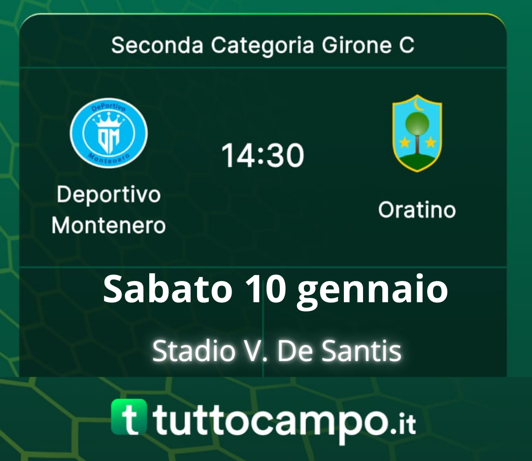 Sabato 10 gennaio alle ore 14:30, per l'ultima giornata di andata del campionato di seconda categoria molisana, il Deportivo Montenero ospiterà al De Santis l'Oratino di mister Pasquale Mignogna.