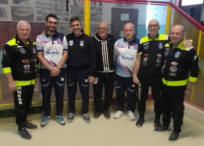 TERMOLI. Avvio con sconfitta la Coppa Molise per la Bocciofila montenerese. La gara si è disputata sabato nel centro adriatico, dove la compagine di Montenero ha affrontato la più titolata squadra di Frosolone. Sei a due il risultato al termine delle gare disputate con la formula di otto partite a otto punti: due partite di terna, due singole e quattro doppie.