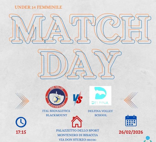 Giovedi 26 febbraio alle ore 17:15 il Palazzetto dello Sport di Montenero di Bisaccia si accenderà per un match che promette scintille. Le ragazze della Volley Blackmount scendono in campo contro la Delfina Volley School in una sfida d'alta quota.