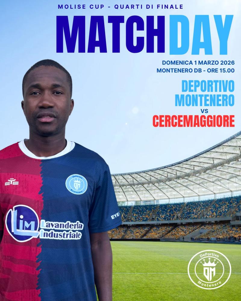 Domenica 1 marzo 2026 alle ore 15:00, lo stadio V. De Santis di Montenero di Bisaccia, ospiterà una sfida molto attesa valevole per i quarti di finale della Molise Cup di Seconda Categoria: il Deportivo Montenero riceverà il Cercemaggiore, guidato da mister Stefano Di Stasi.