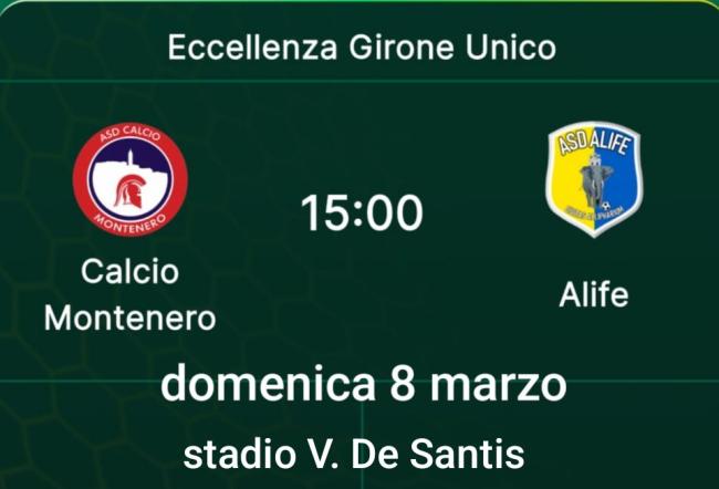 Domenica 8 marzo 2026, ore 15:00 — allo stadio De Santis va in scena la nona giornata di ritorno, ventiquattresima giornata del campionato di Eccellenza molisana: il Montenero ospita l'Alife.