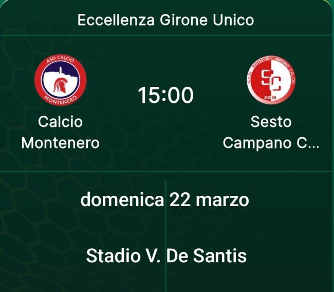 Domenica 22 marzo alle ore 15:00, allo stadio Vincenzo De Santis, il Montenero ospita il Sesto Campano, per la 26^ gara di eccellenza molisana.